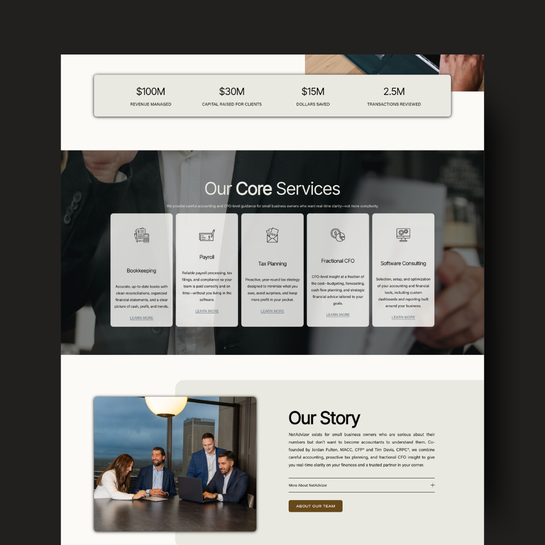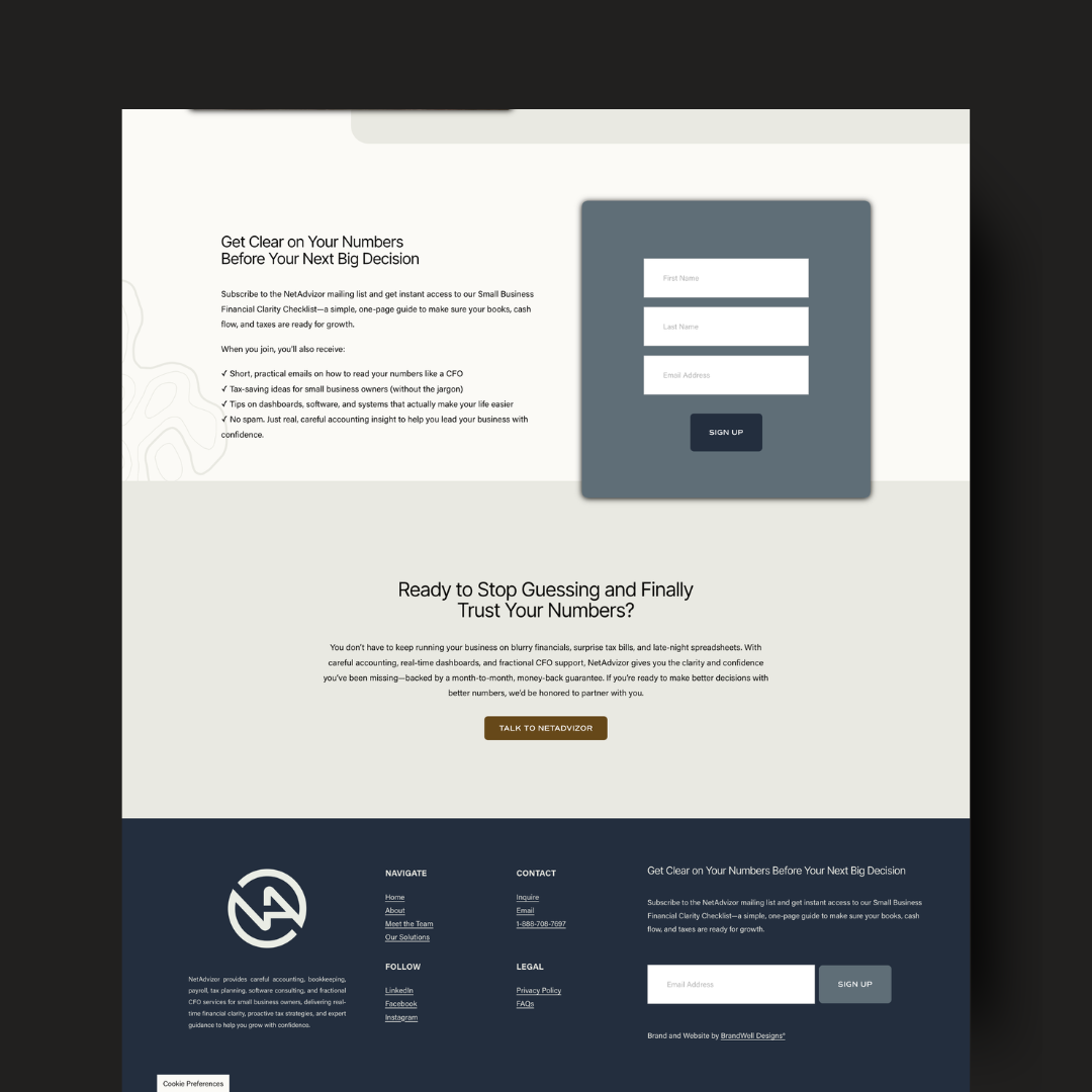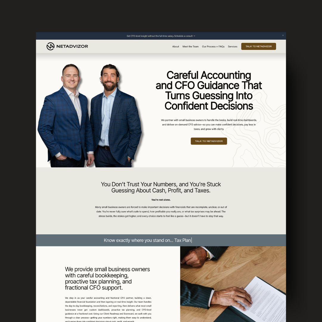 Professional and modern website design for accounting firm, NetAdvizor. View their brand here.